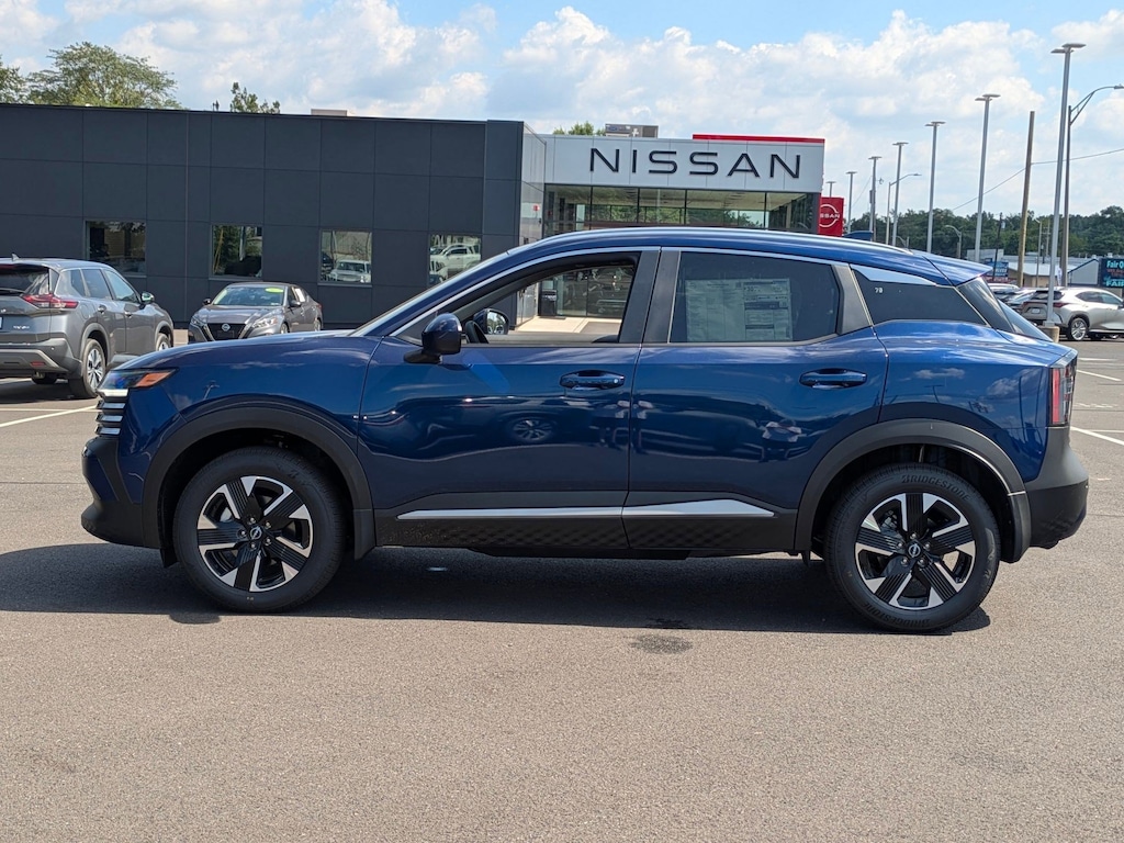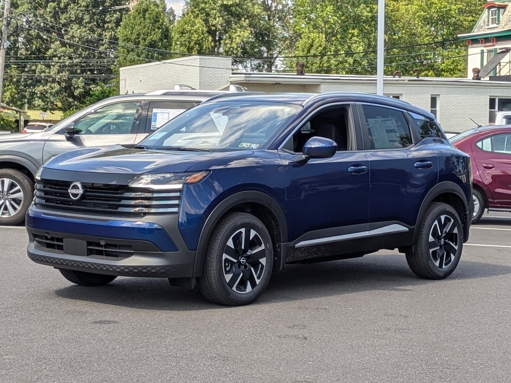 2025 Nissan Kicks SV Deep Blue Pearl AWD CVT with Xtronic 2.0L DOHC 17" Alloy Wheels, 4 Speakers, 4-Wheel Disc Brakes, ABS brakes, Air Conditioning, Alloy wheels, AM/FM radio: Sirius, Auto High-beam Headlights, Blind Spot Warning, Brake assist, Bumpers: body-color, Carpeted Floor Mats, Cloth Seat Trim, Door Trim Panel Scuff Plates, Driver door bin, Driver vanity mirror, Dual front impact airbags, Dual front side impact airbags, Electronic Stability Control, Four wheel independent suspension, Front anti-roll bar, Front Bucket Seats, Front Center Armrest, Front reading lights, Fully automatic headlights, Heated door mirrors, Heated Front Seats, Illuminated Driver & Passenger Sun Visors, Illuminated entry, Knee airbag, Low tire pressure warning, Occupant sensing airbag, Outside temperature display, Overhead airbag, Panic alarm, Panoramic Moonroof, Passenger door bin, Passenger vanity mirror, Power door mirrors, Power steering, Power windows, Radio data system, Radio: AM/FM Audio System, Rear anti-roll bar, Rear Parking Sensors, Rear reading lights, Rear side impact airbag, Rear window defroster, Rear window wiper, Remote Engine Start, Remote keyless entry, Roof Rails, Seat Back Pocket, Security system, Speed control, Speed-sensing steering, Splash Guards, Split folding rear seat, Spoiler, Sport steering wheel, Steering wheel mounted audio controls, Sunglass Holder, SV Premium Package, Tachometer, Telescoping steering wheel, Tilt steering wheel, Traction control, Trip computer, Variably intermittent wipers, Wireless Apple CarPlay/Wireless Android Auto. Price includes all applicable rebates, Additional discounts may apply, see dealer for details.$1000 - Nissan MY25 New Kicks (SV and SR) Retail/Lease Bonus Cash. Exp. 11/03/2025