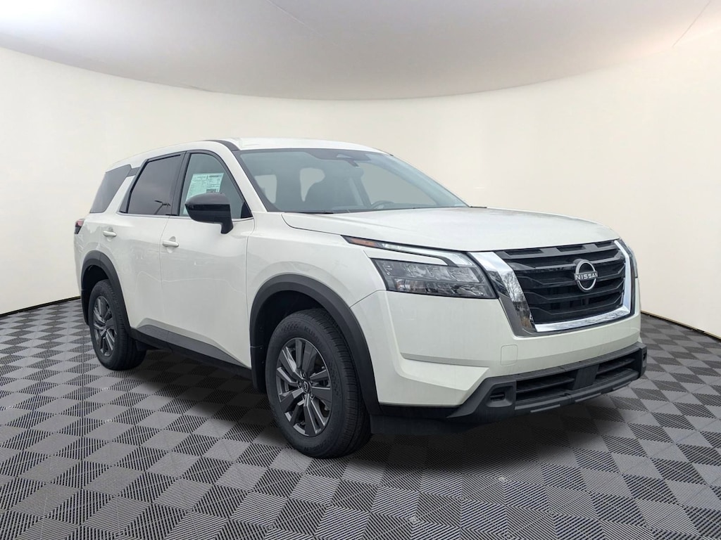 2025 Nissan Pathfinder S Glacier White 4WD 9-Speed Automatic 3.5L V6 DOHC 4WD, 3rd row seats: bench, 4-Wheel Disc Brakes, 6 Speakers, ABS brakes, Air Conditioning, Alloy wheels, AM/FM radio: SiriusXM, Auto High-beam Headlights, Automatic temperature control, Bench Seat Carpeted Floor Mats (Set of 4), Black Splash Guards (Set of 4), Blind Spot Warning, Brake assist, Bumpers: body-color, Cloth Seating Surfaces, Delay-off headlights, Driver door bin, Driver vanity mirror, Dual front impact airbags, Dual front side impact airbags, Electronic Stability Control, Four wheel independent suspension, Front anti-roll bar, Front Bucket Seats, Front Center Armrest, Front dual zone A/C, Front reading lights, Fully automatic headlights, Illuminated entry, Knee airbag, Low tire pressure warning, NissanConnect featuring Apple CarPlay and Android Auto, Occupant sensing airbag, Outside temperature display, Overhead airbag, Overhead console, Panic alarm, Passenger door bin, Passenger vanity mirror, Power door mirrors, Power steering, Power windows, Radio data system, Radio: AM/FM Audio System w/NissanConnect, Rear air conditioning, Rear anti-roll bar, Rear Parking Sensors, Rear reading lights, Rear side impact airbag, Rear window defroster, Rear window wiper, Reclining 3rd row seat, Remote keyless entry, Security system, Speed control, Speed-sensing steering, Split folding rear seat, Spoiler, Steering wheel mounted audio controls, Tachometer, Telescoping steering wheel, Tilt steering wheel, Traction control, Trip computer, Variably intermittent wipers, Wheels: 18" x 8J Painted Alloy, 4WD. Price includes all applicable rebates, Additional discounts may apply, see dealer for details.$500 - Nissan Select VIN Retail Bonus Cash. Exp. 11/03/2025 $5000 - Nissan Customer Cash. Exp. 11/03/2025