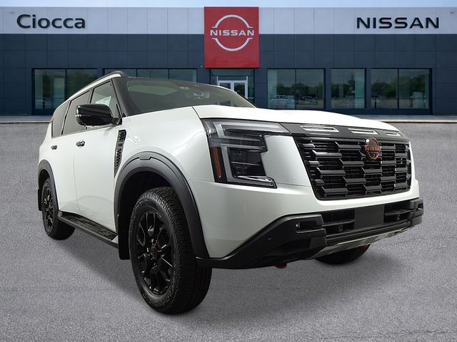 Armada PRO-4X, 4D Sport Utility, 3.5L DOHC, 9-Speed Automatic, 4WD, Aspen White, Charcoal, 2nd Row Center Console with Two Cupholders, 2nd Row Outboard Captain's Chairs with Armrests, Biometric Cooling, Captain's Chair Seat Package, Climate Controlled Heated and Ventilated Front Seats, EZ Flex Second Row Seating System with One Touch Release, Front Tow Hooks, Hands-Free Power Liftgate, Heated 2nd Row Seats, Illuminated Kick Plates, in-Car Camera, Intelligent Dash Cam, Intelligent Rear View Mirror (I-RVM), Navigation system: Google Maps, Panoramic Moonroof, PRO-4X Premium Package with Captain's Chair, Wheels: 20" x 8.5J Painted PRO-4X Alloy. 4D Sport Utility 2026 Nissan Armada PRO-4X PRO-4X Aspen White