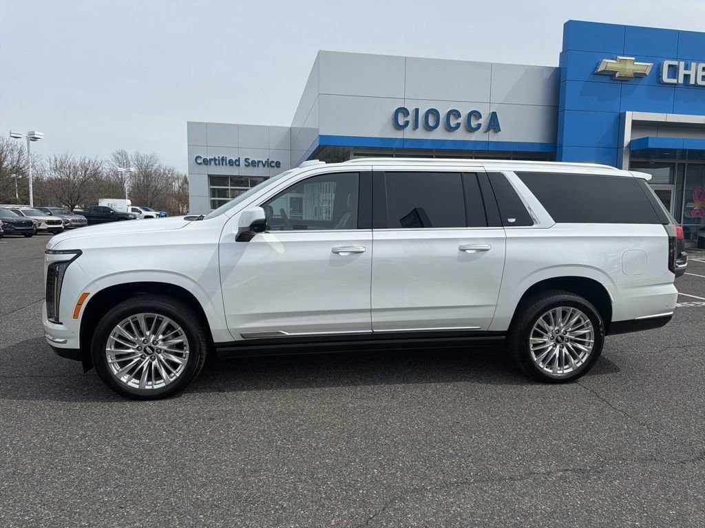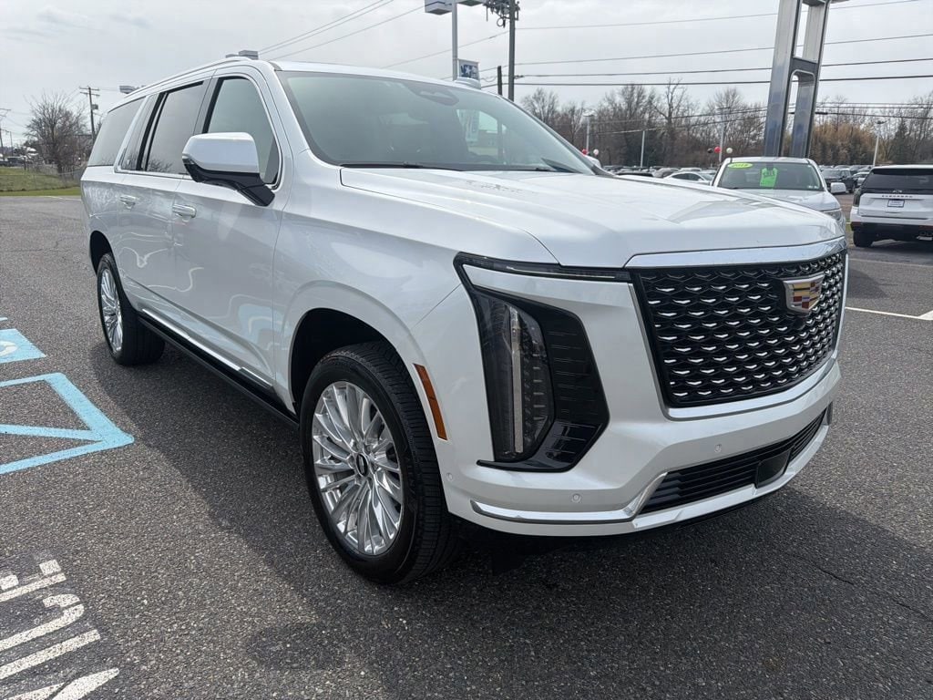 ***1 Owner, Clean CarFax Report, Power Running Boards***Discover the epitome of luxury and capability with the 2025 Cadillac Escalade ESV Premium. This exceptional SUV is poised to elevate your driving experience, offering unparalleled comfort, advanced technology, and uncompromising performance.Adorned in the stunning White exterior, this Escalade ESV Premium boasts an impressive array of premium features, including:- 19 Speakers AKG Studio Audio System- Heads-Up Display- Magnetic Ride Control Suspension- Wireless Apple CarPlay/Android Auto- Power Panoramic Tilt-Sliding Sunroof- Heated and Ventilated Front Seats- Heated Rear Seats- Trailering Assist GuidelinesPowered by a robust 6.2L V8 engine and equipped with 4-Wheel Drive, this Escalade ESV delivers exceptional capability, whether you're navigating the city streets or exploring the open road. With an impressive 14 MPG in the city and 18 MPG on the highway, this SUV offers a balance of power and efficiency that is sure to impress.Step inside and experience the epitome of luxury. The Escalade ESV Premium's interior is crafted with the finest materials, including Leather Seating Surfaces with Precision Perforated Inserts, providing unparalleled comfort and style. The spacious cabin offers ample room for up to eight passengers, ensuring everyone travels in absolute comfort.Cutting-edge technology is at your fingertips, with features like the Reconfigurable Full-Color Head-Up Display, Trailering App, and Blind Zone Steering Assist with Trailering, keeping you connected, informed, and safe on every journey.Whether you're transporting your family, towing your boat, or embarking on a road trip, the 2025 Cadillac Escalade ESV Premium is the ultimate companion. Its impressive capabilities, luxurious amenities, and refined design make it a true standout in the SUV segment.We invite you to experience the exceptional 2025 Cadillac Escalade ESV Premium for yourself. Schedule a test drive today and discover the unparalleled joy of owning this remarkable vehicle.