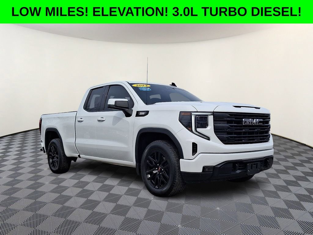 Take a look at this 2023 GMC Sierra 1500 Elevation, a sharp-looking, low-mileage pickup powered by the highly sought-after 3.0L Duramax turbo-diesel engine paired with a smooth 10-speed automatic transmission. This is a one-owner truck that was recently traded in for a brand-new Sierra 2500, and it delivers the perfect mix of capability, efficiency, and bold Elevation styling. Finished with eye-catching 20 high-gloss black painted aluminum wheels, this Sierra has the aggressive stance and modern look truck buyers love.